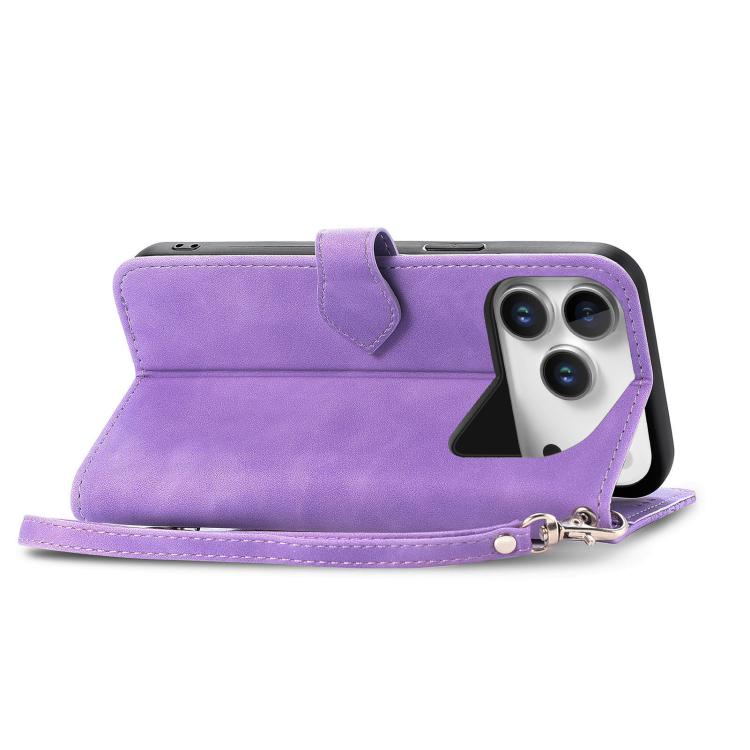 Funda de piel con cremallera y diseño floral en relieve para iPhone 17 Pro (morado)