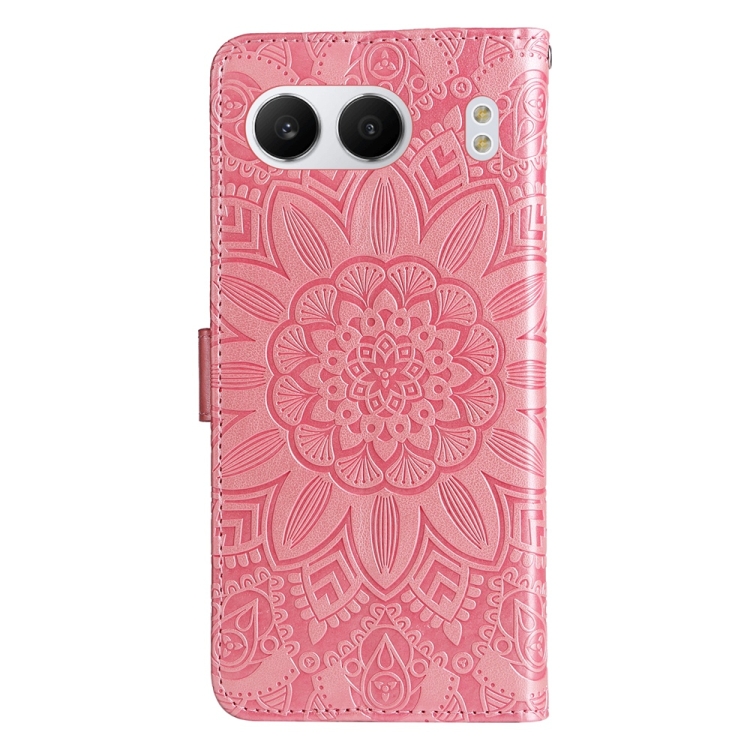 Funda de Piel para OnePlus Nord 4 con Diseño de Girasol en Relieve (Oro Rosa)
