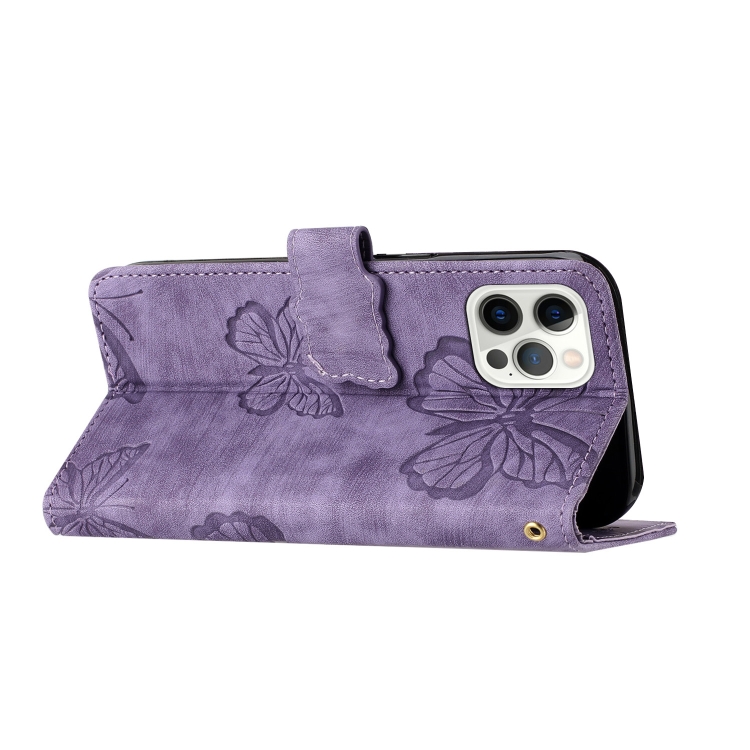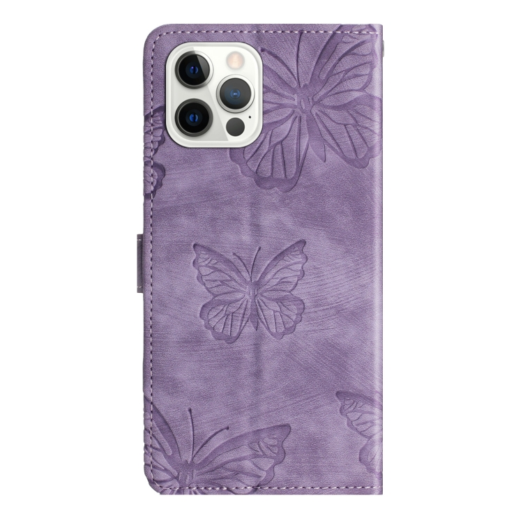 Funda de Piel con Relieve de Mariposa para iPhone 16 Pro Max (Morado)