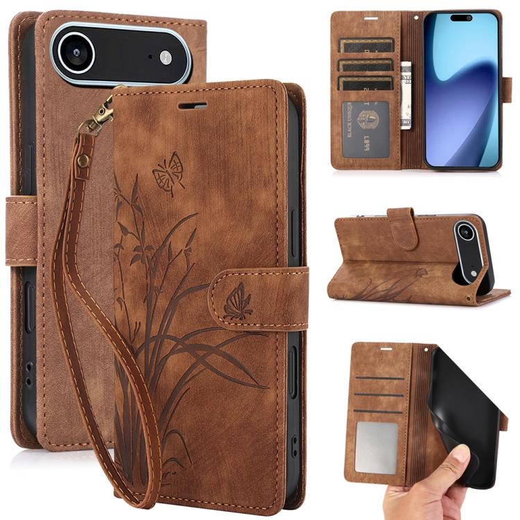 Funda de piel con relieve de mariposa y orquídea para iPhone Air (marrón)