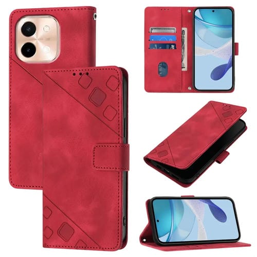 Funda de Piel con Relieve para Teléfono Vivo Y28 4G (Roja)