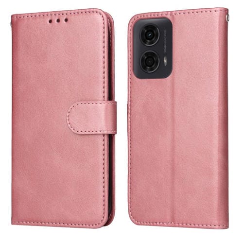 Funda de Piel con Tapa y Textura Clásica de Becerro para Motorola Moto G04/G04S/G24/E14 (Oro Rosa)