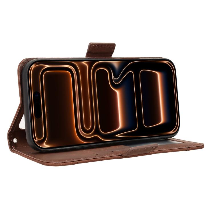Funda de piel con textura de becerro para iPhone 17 Pro Max, con ranuras para tarjetas (marrón)