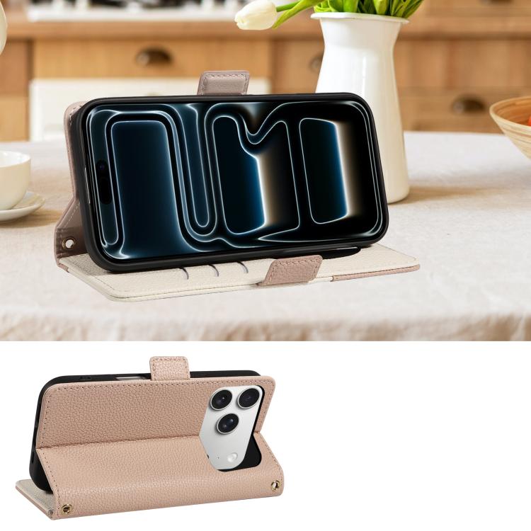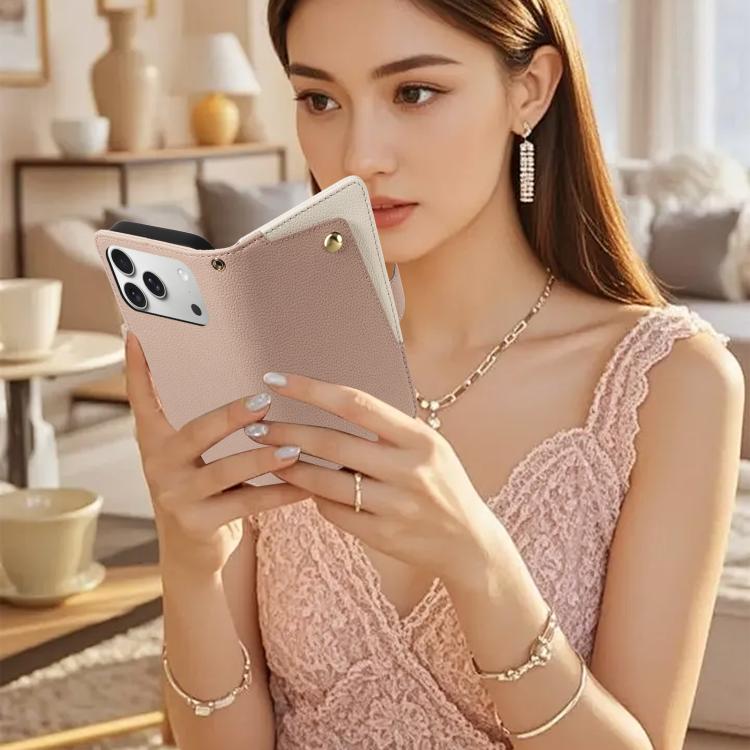 Funda de piel con textura de lichi y espejo para iPhone 17 Pro Max (rosa)