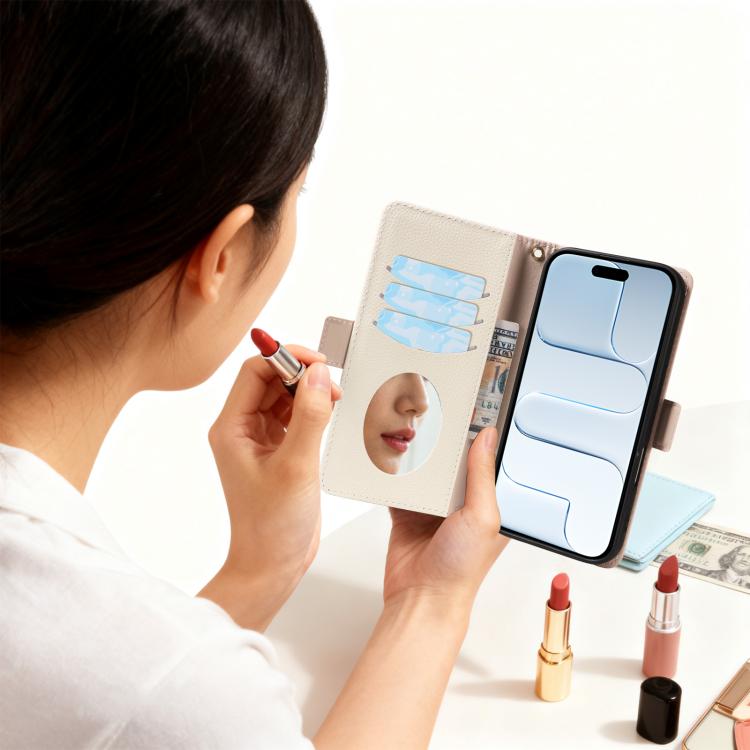 Funda de piel con textura de lichi y espejo para iPhone Air (azul)