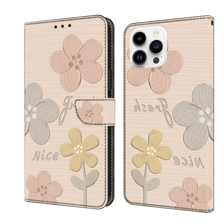 Funda de Piel Pintada Fresca para iPhone 16 Pro (Flores Beige)