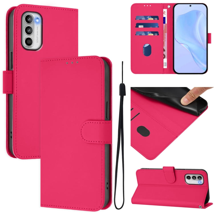 Funda de Piel Sintética con Cordón para Motorola Moto G 5G (2022) (Rosa y Rojo)
