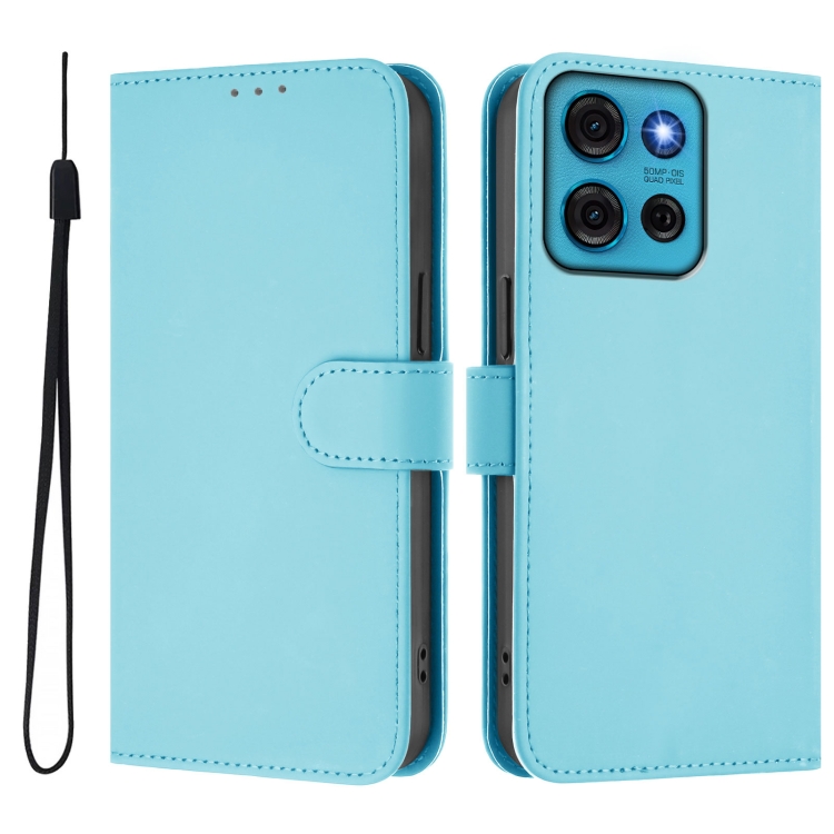 Funda de Piel Sintética con Cordón para Motorola Moto G75 5G (Azul Cielo)