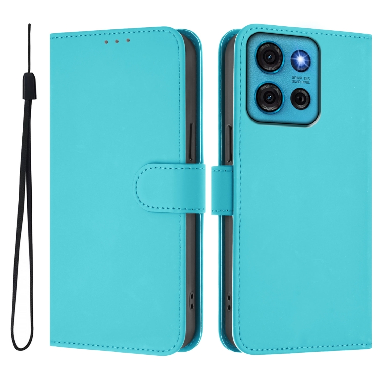 Funda de Piel Sintética con Cordón para Motorola Moto G75 5G (Azul Lago)