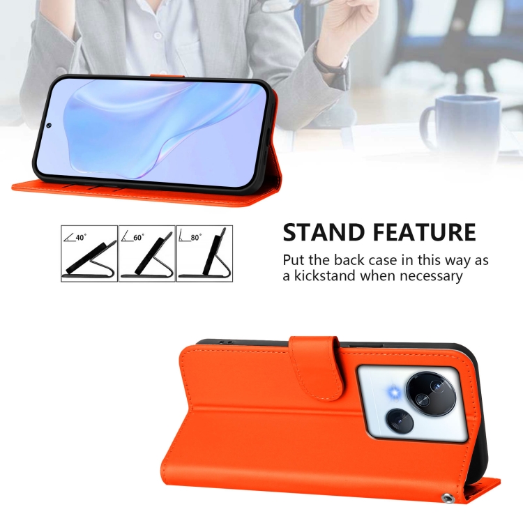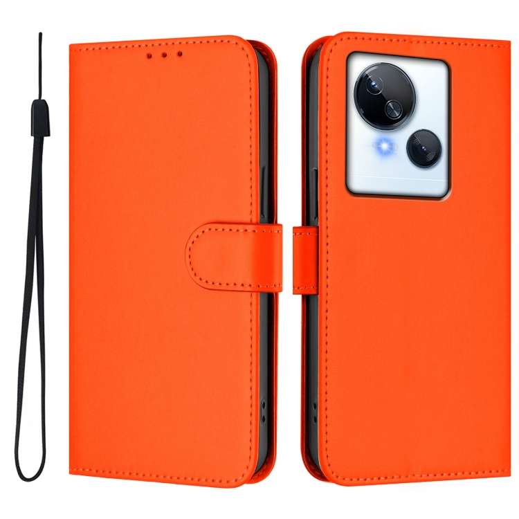 Funda de Piel para Tecno Spark 10 5G con Textura Lisa y Cordón (Naranja)