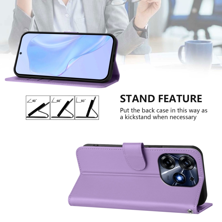 Funda de Piel con Cordón para Tecno Spark 10 Pro 4G (Morado Lavanda)