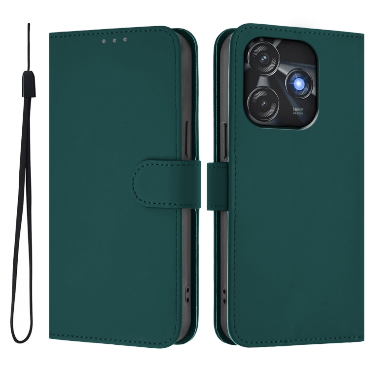 Funda de Piel con Textura y Cordón para Tecno Spark 10C/10 4G (Verde Oscuro)