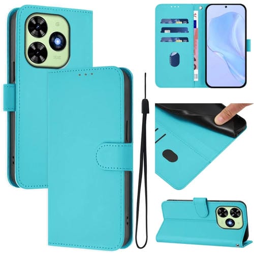 Funda de Piel para Tecno Spark Go 2024 4G con Textura y Cordón (Azul Lago)