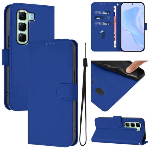 Funda de Piel Sintética con Cordón para Teléfono Infinix Hot 50 4G (Azul Oscuro)