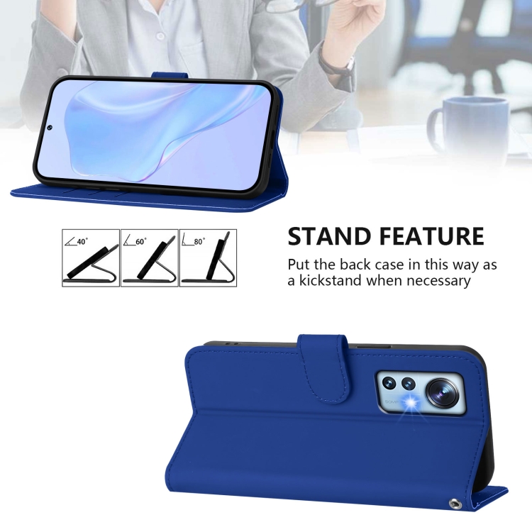Funda de Piel Sintética con Cordón para Xiaomi 12 5G/12S 5G/12X 5G (Azul Oscuro)