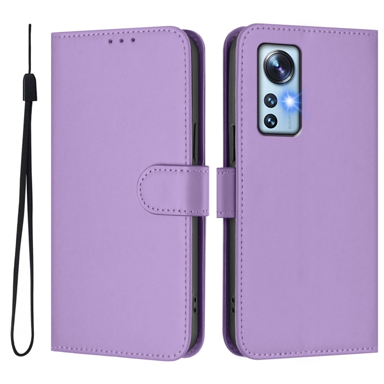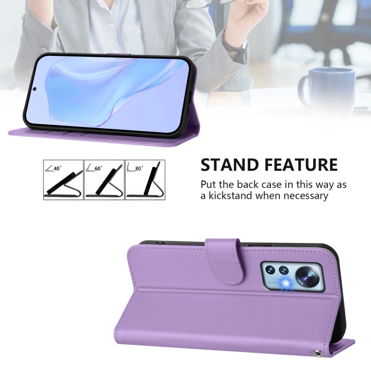Funda de Piel Sintética con Cordón para Xiaomi 12 5G/12S 5G/12X 5G (Morado Lavanda)