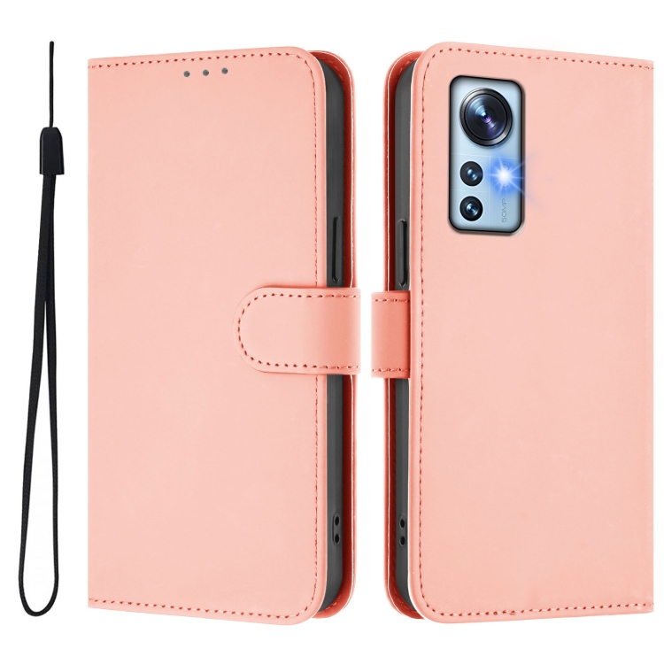 Funda de Piel Sintética con Cordón para Xiaomi 12 5G/12S 5G/12X 5G (Rosa)
