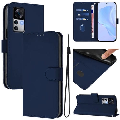 Funda de Piel Sintética con Cordón para Xiaomi 12T/12T Pro (Azul Marino)