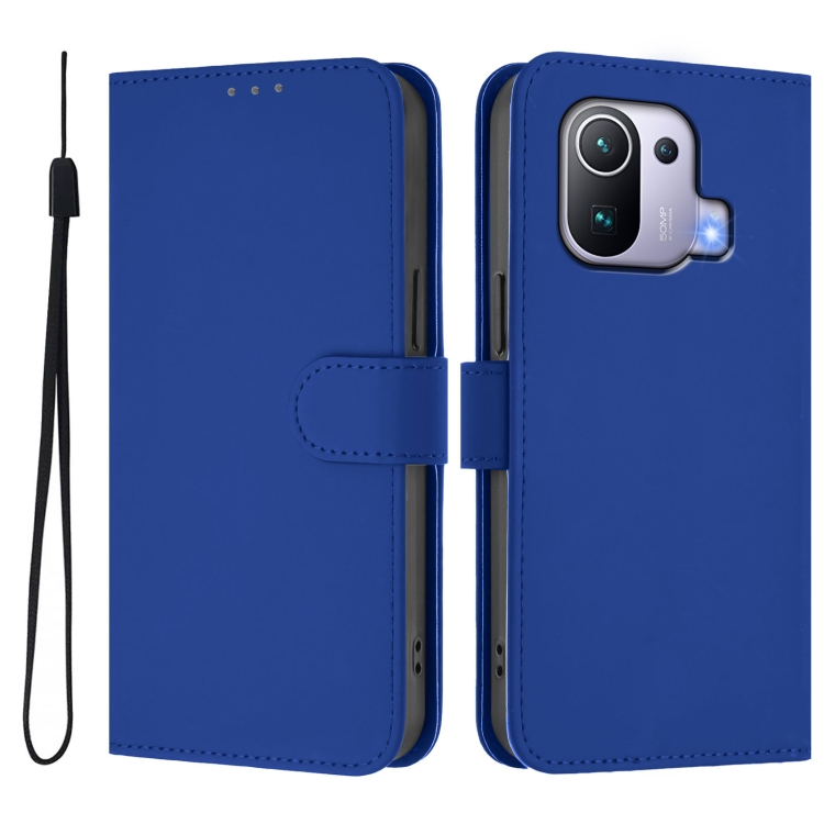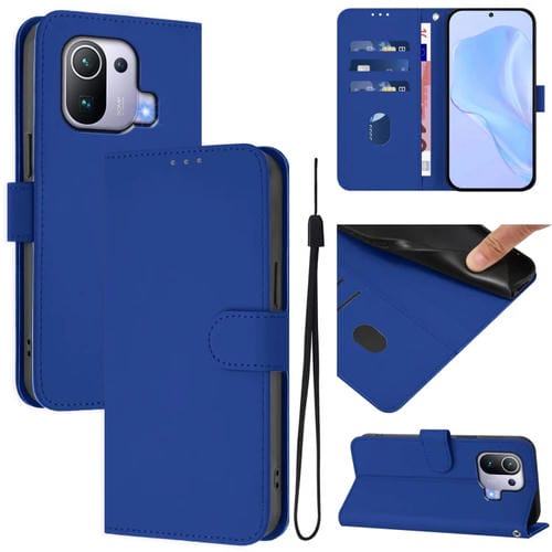Funda de Piel Sintética con Cordón para Xiaomi Mi 11 Pro (Azul Oscuro)