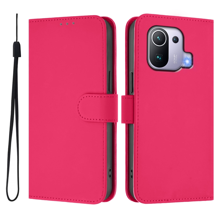 Funda de Piel Sintética con Cordón para Xiaomi Mi 11 Pro (Rosa y Rojo)