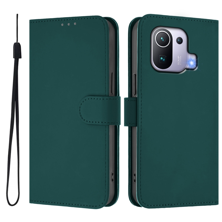 Funda de Piel Sintética con Cordón para Xiaomi Mi 11 Pro (Verde Oscuro)