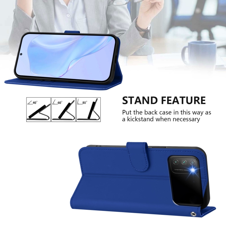 Funda de Piel Sintética con Cordón para Xiaomi Poco M3 (Azul Oscuro)