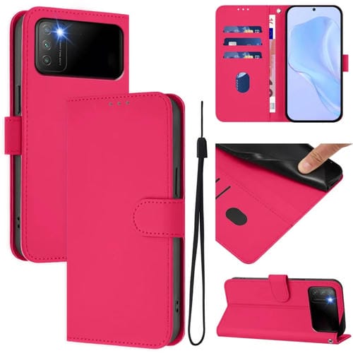 Funda de Piel Sintética con Cordón para Xiaomi Poco M3 (Rosa y Rojo)