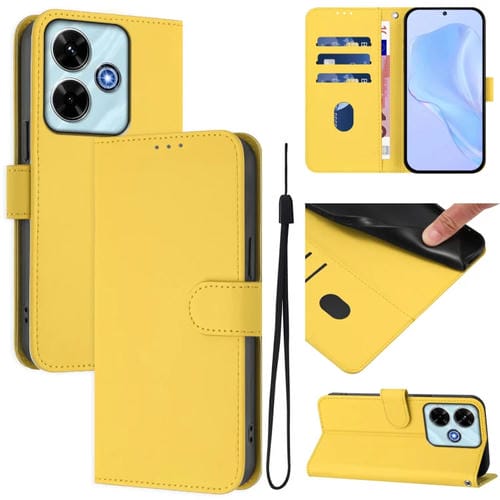 Funda de Piel Sintética con Cordón para Xiaomi Poco M6 4G (Amarillo Limón)