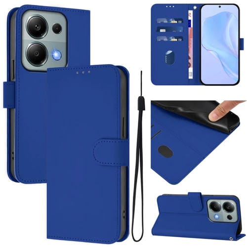 Funda de Piel Sintética con Cordón para Xiaomi Poco M6 Pro 4G (Azul Oscuro)