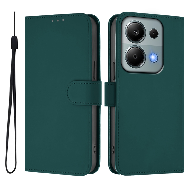 Funda de Piel Sintética con Cordón para Xiaomi Poco M6 Pro 4G (Verde Oscuro)