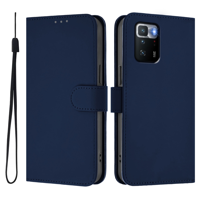 Funda de Piel Sintética con Cordón para Xiaomi Poco X3 Gt (Azul Marino)