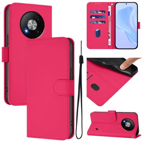 Funda de Piel Sintética con Cordón para ZTE Blade A73 5G (Rosa y Rojo)