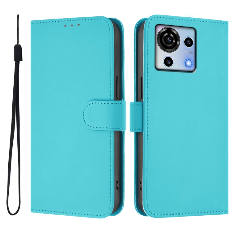 Funda de Piel Sintética con Cordón para ZTE Blade V50 Vita (Azul Lago)