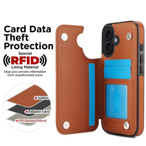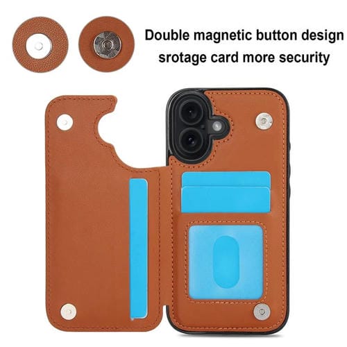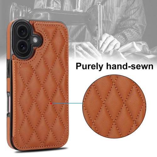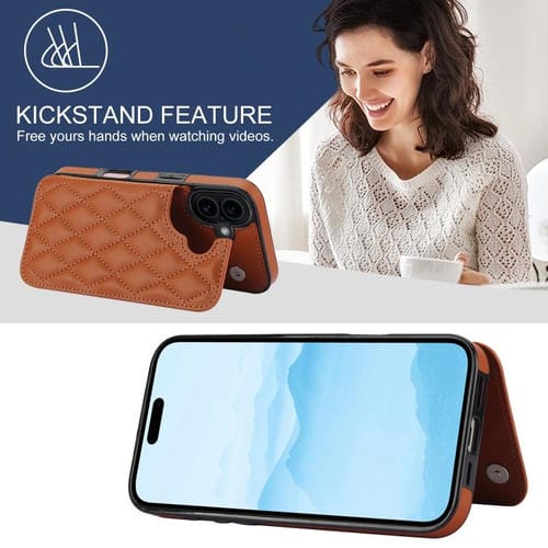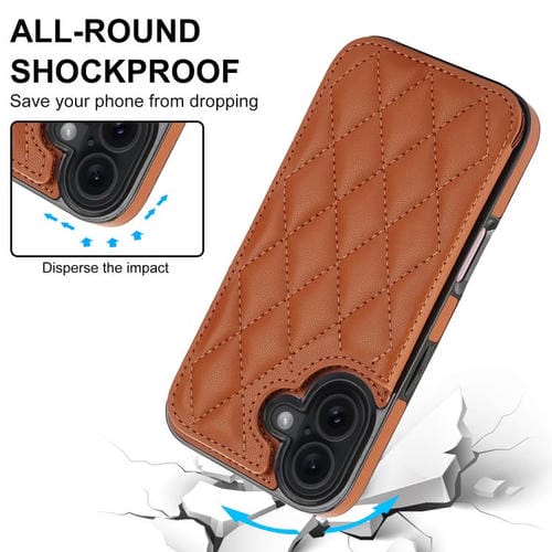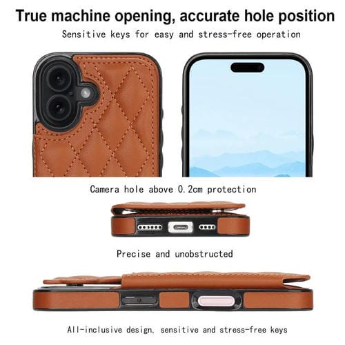 Funda de piel sintética con doble hebilla y diseño rómbico para iPhone 17 (marrón)