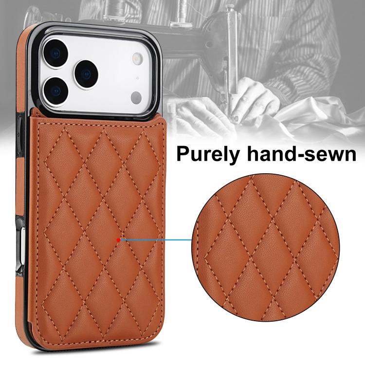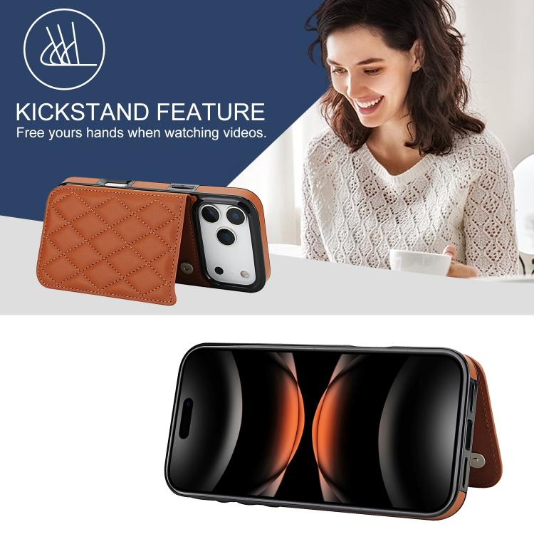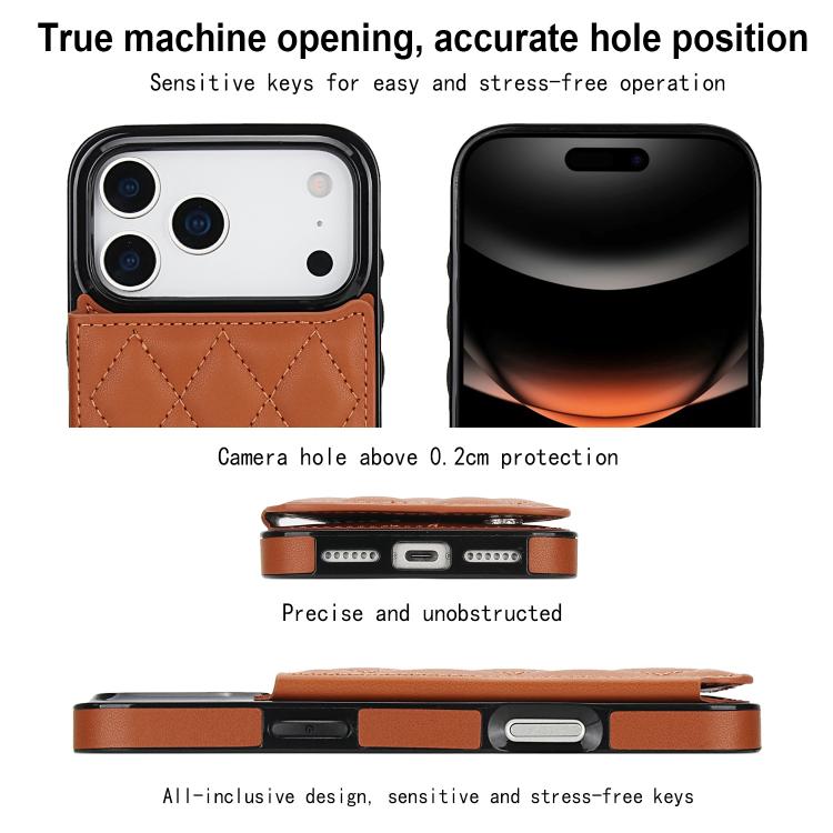 Funda de piel sintética con doble hebilla y diseño rómbico para iPhone 17 Pro Max (marrón)
