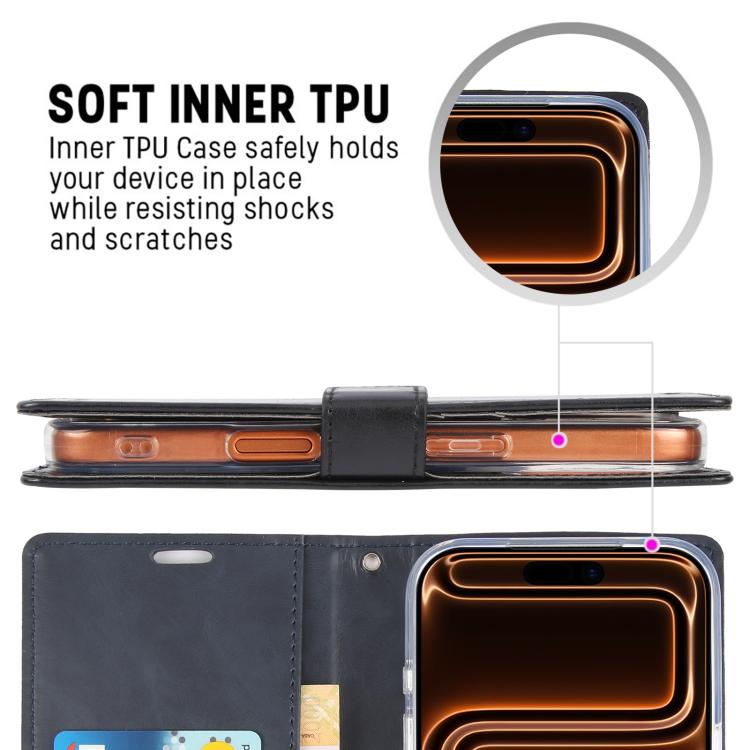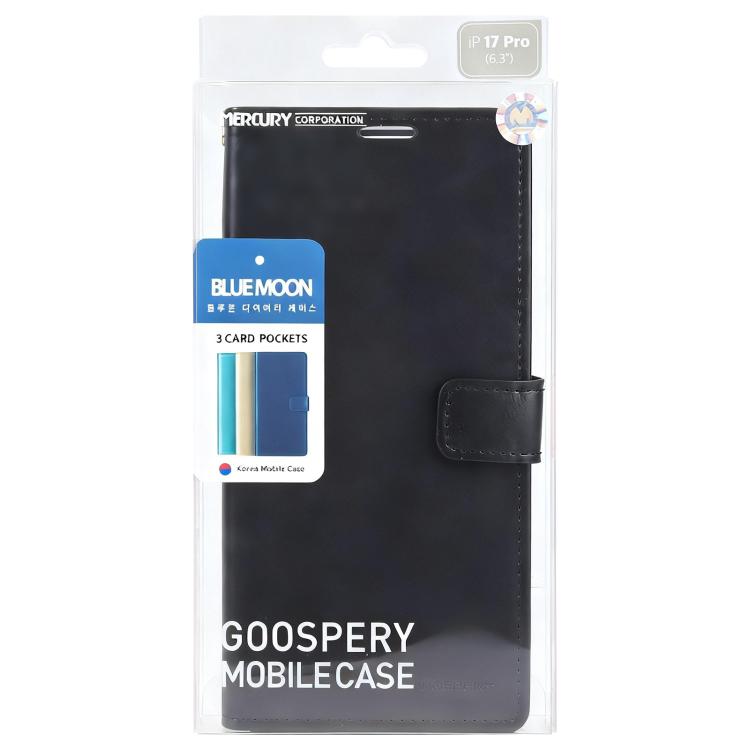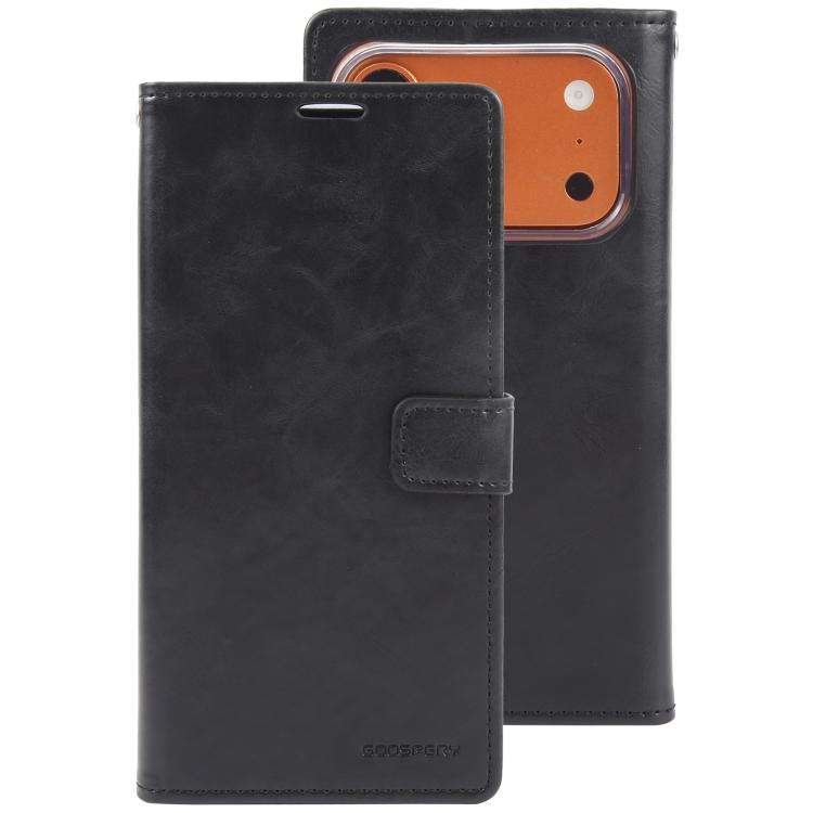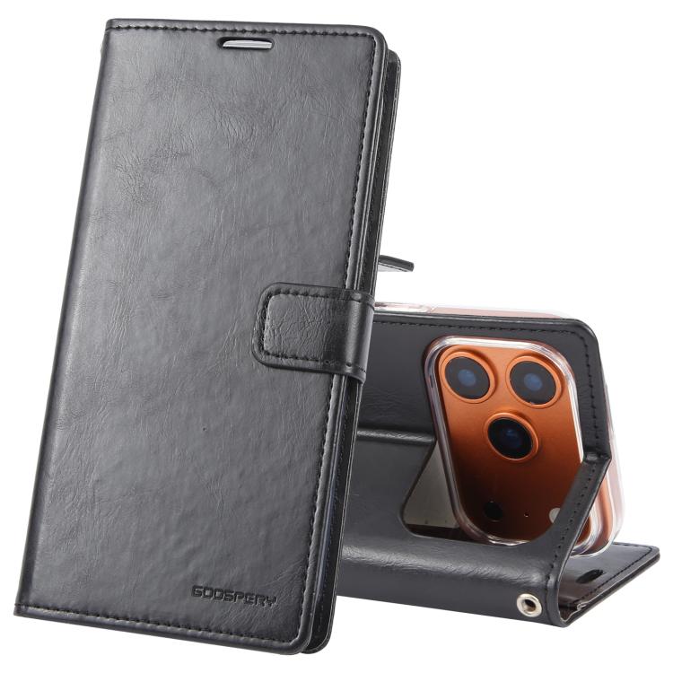 Funda de piel texturizada Crazy Horse GOOSPERY BLUE MOON para iPhone 17 Pro (negra)