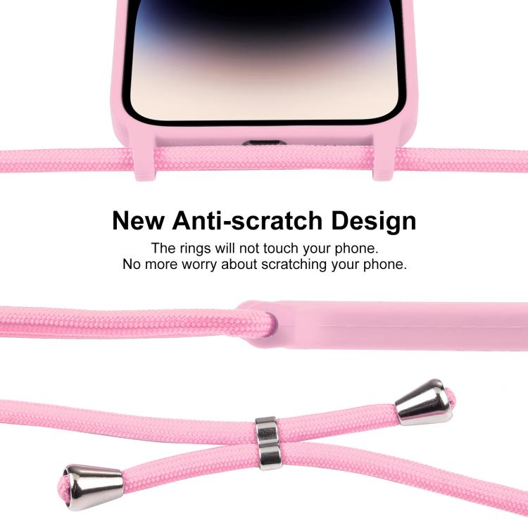 Funda de silicona líquida con correa cruzada para iPhone 17 Pro Max (rosa)