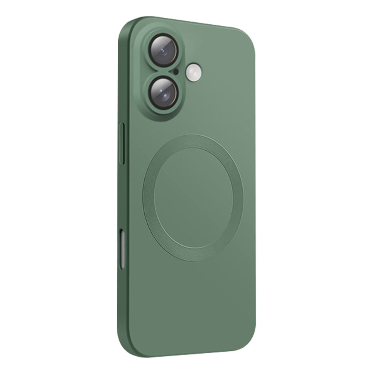 Funda de Silicona Líquida Magsafe para iPhone 16 Textura de Cd (Verde Oscuro)
