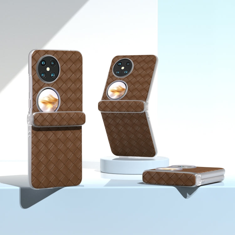 Funda de Teléfono Huawei Pocket 2 3 en 1 con Marco Translúcido y Textura Tejida (Marrón)