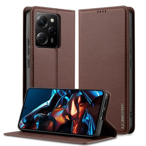 Funda de Teléfono de Pu con Textura Fina Esmerilada para Redmi Note 12 Pro 5G Lc.Imeeke L1 Series (Marrón)