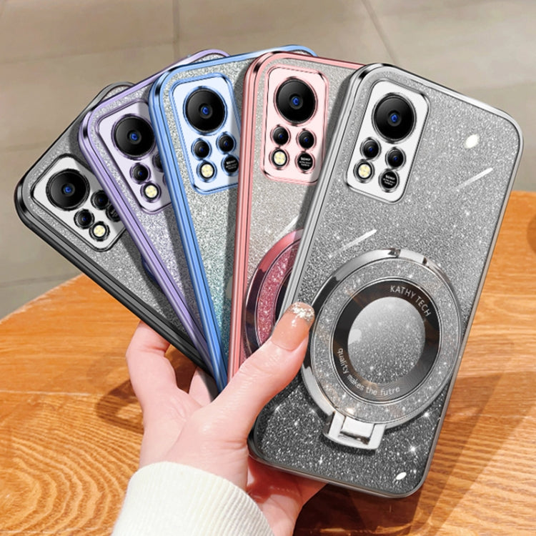 Funda TPU con Soporte Redondo y Purpurina Degradada Revestimiento NFC para Infinix Hot 11S (Rosa)