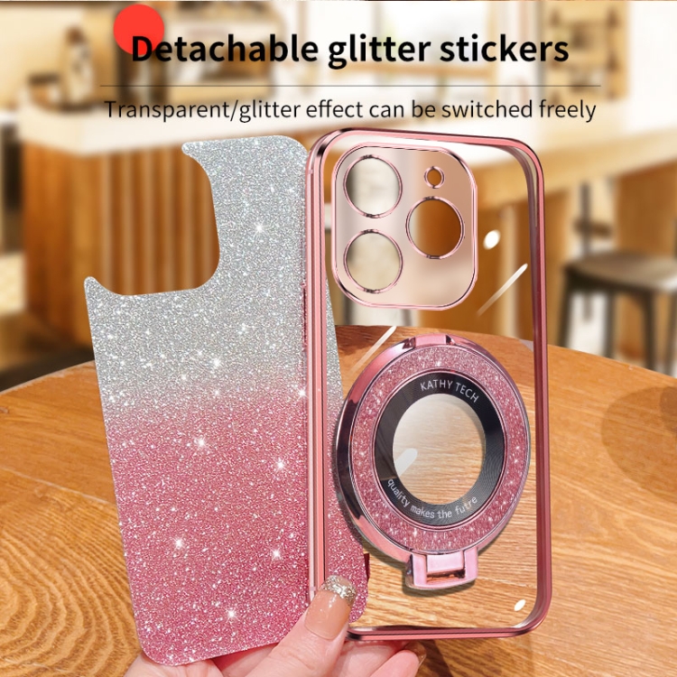 Funda de TPU con Soporte Redondo y Purpurina Degradada para Infinix Hot 40I (Azul Sierra)