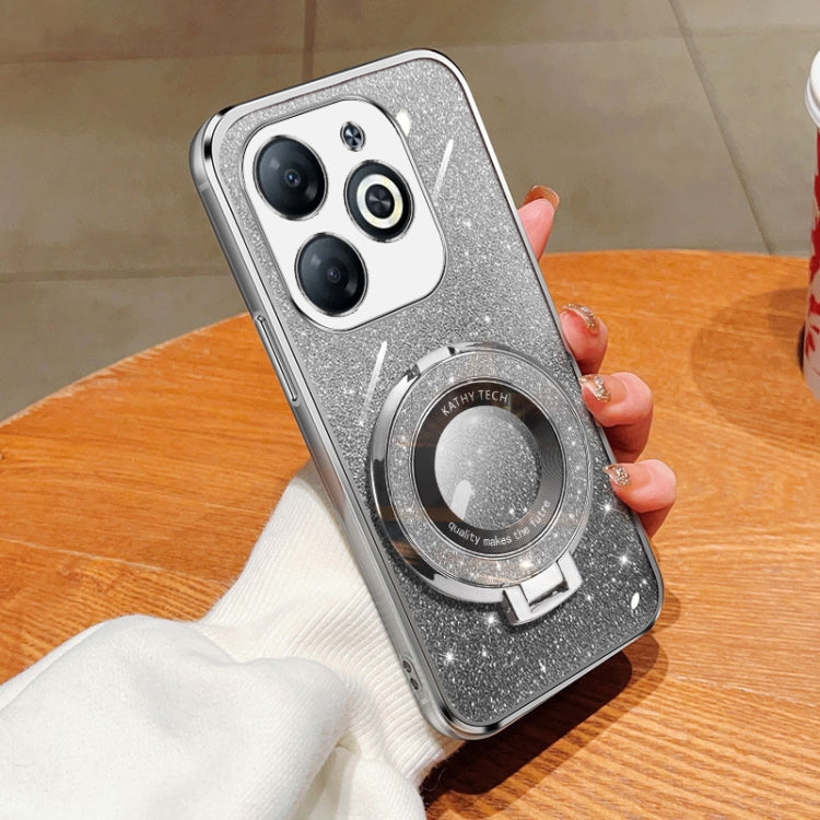 Funda de TPU con Soporte Redondo y Purpurina Degradada para Infinix Smart 8 y Smart 8 HD (Plateada)