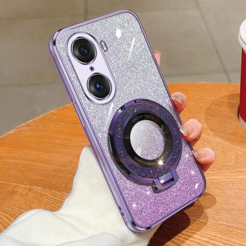 Funda de TPU con Soporte Redondo y Purpurina Degradada para Honor 60 Pro (Morado)