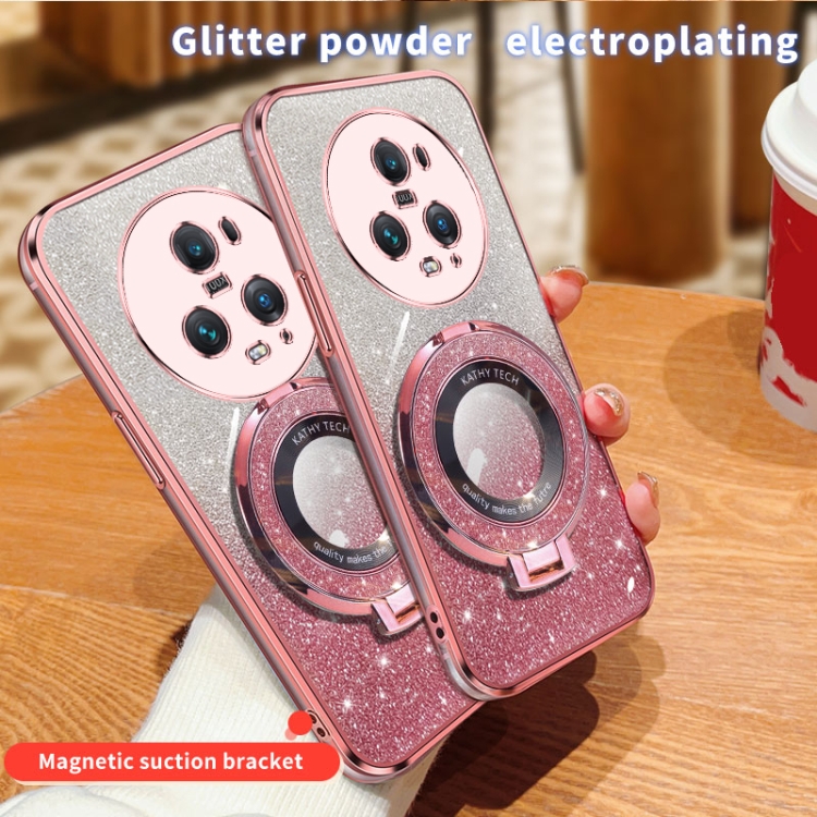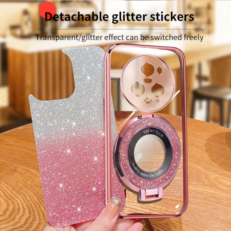 Funda de Teléfono TPU con Soporte Redondo y Purpurina Degradada para Honor Magic5 Pro (Azul Sierra)