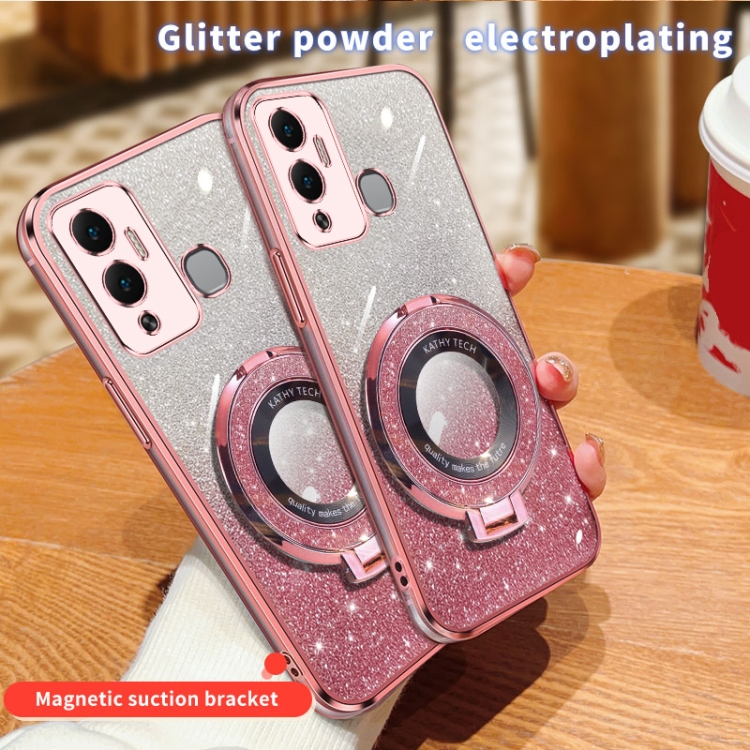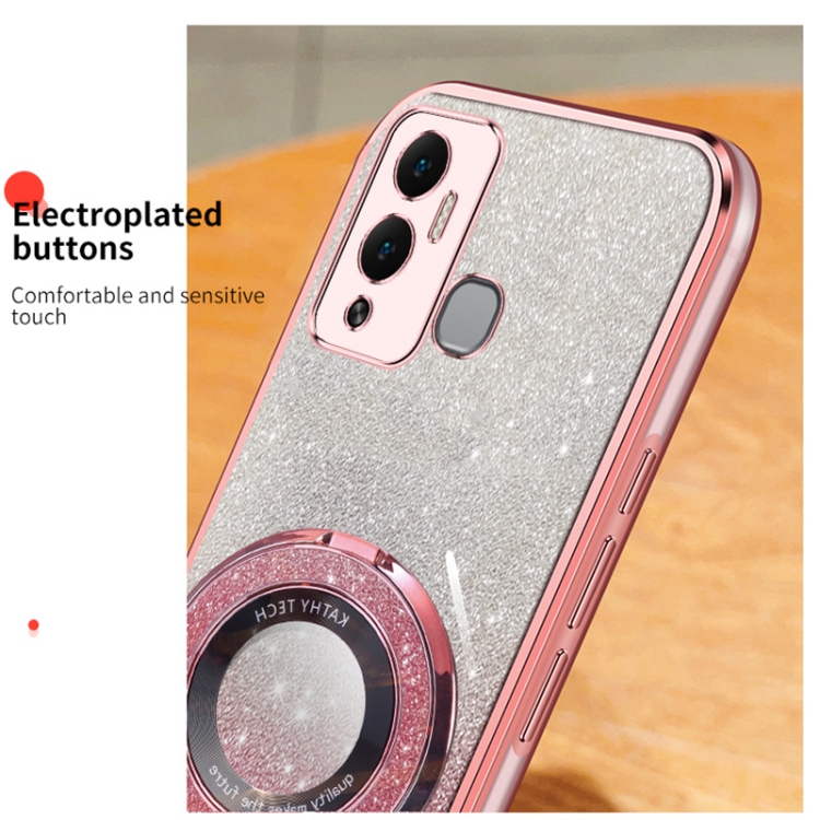Funda TPU con Soporte Redondo y Purpurina Degradada para Infinix Hot 12 Play (Rosa)