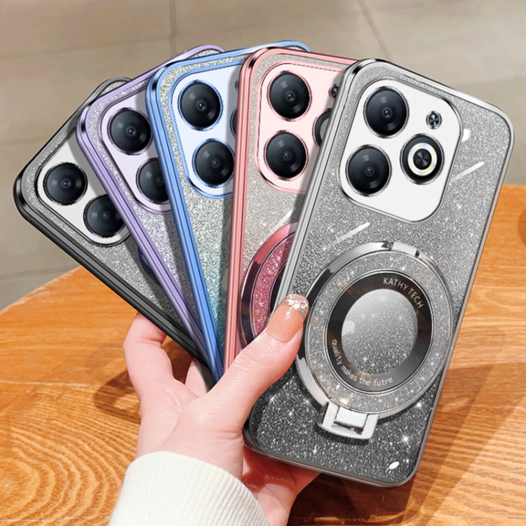 Funda de TPU con Soporte Redondo y Purpurina Degradada para Infinix Hot 40I (Rosa)
