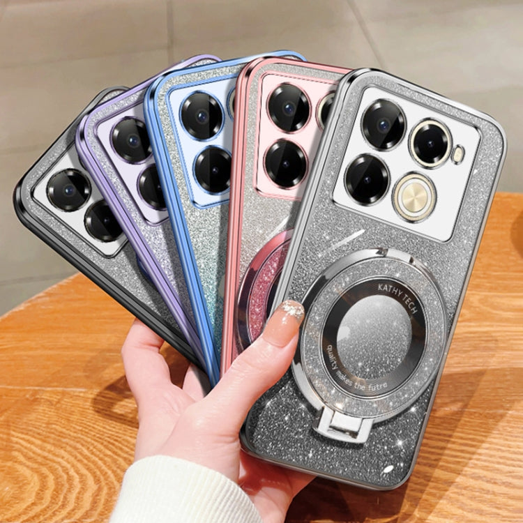 Funda TPU con Soporte Redondo y Purpurina Degradada para Infinix Note 40 Pro 5G (Rosa)