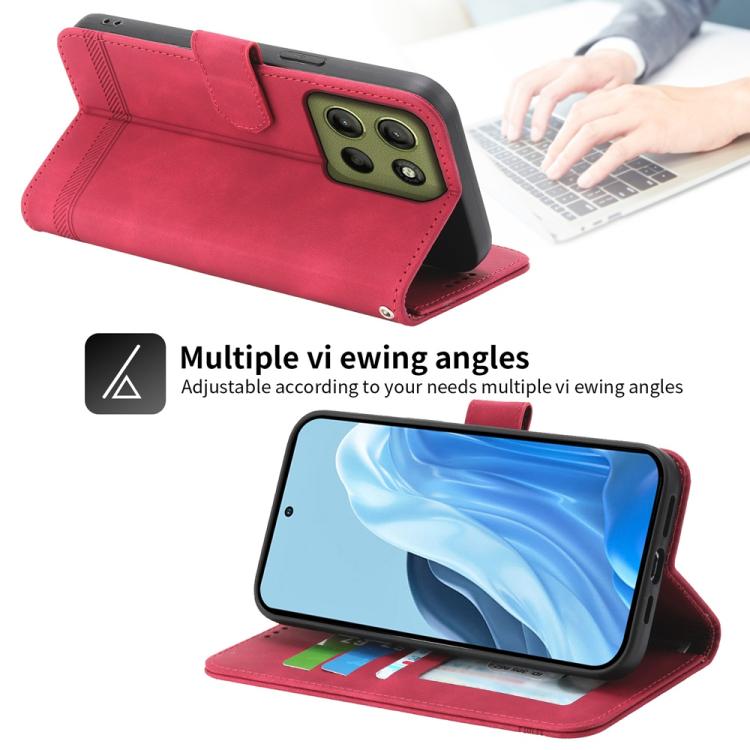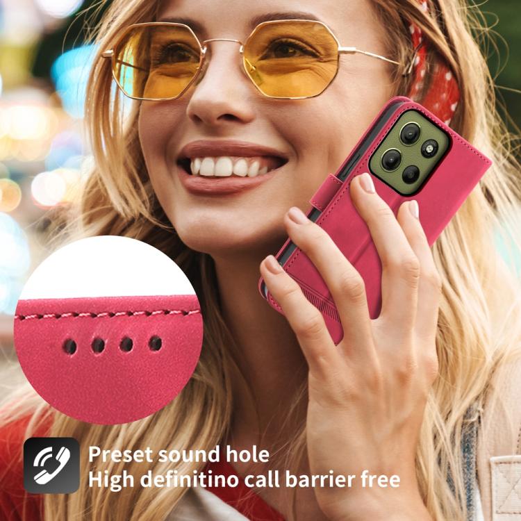 Funda híbrida de Cuero PU y TPU Dierfeng Dream Line para Motorola Moto G15 (Rojo)
