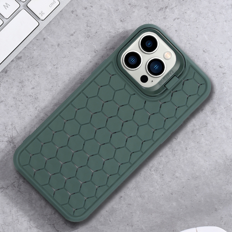 Funda TPU con Soporte para Lente Radiante Forma de Panal para iPhone 16 Pro (Verde)